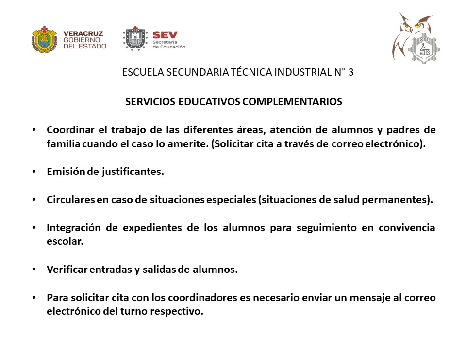 correo electrónico: servicioseducativostm3@gmail.com