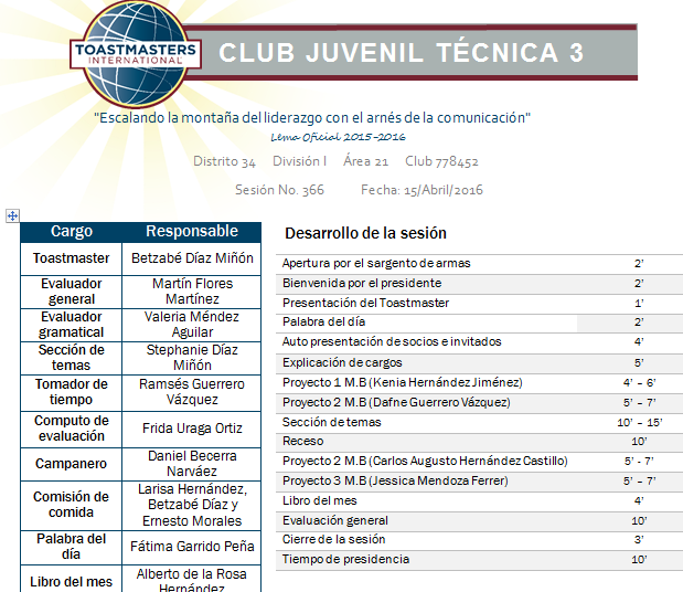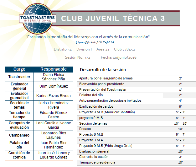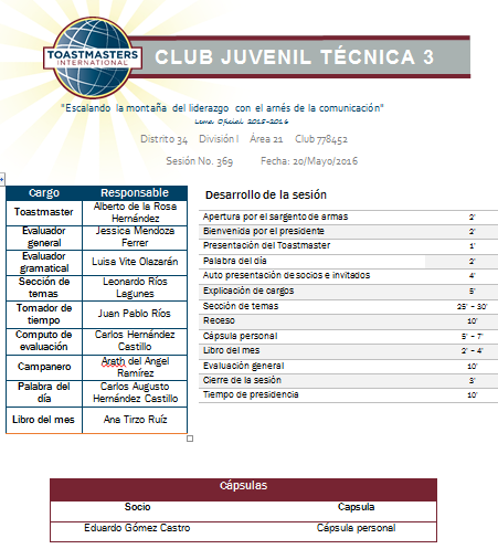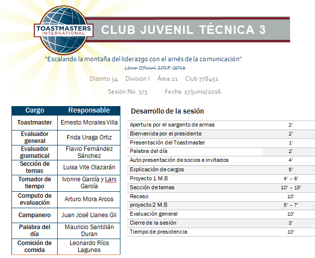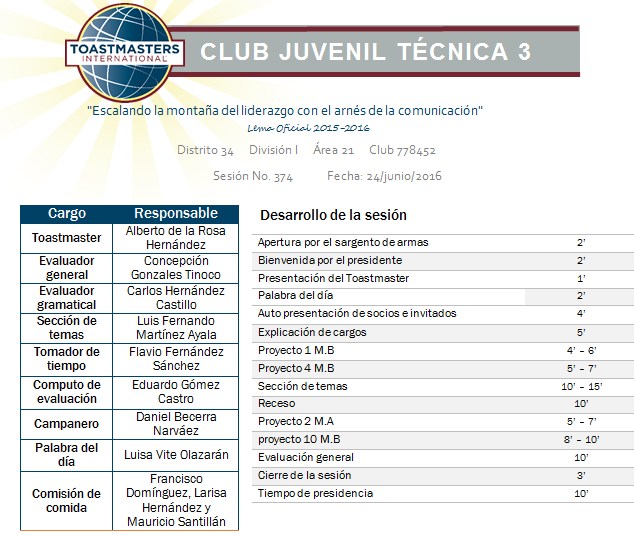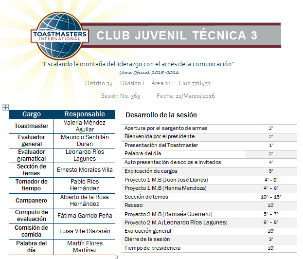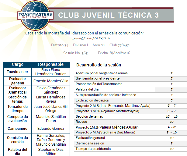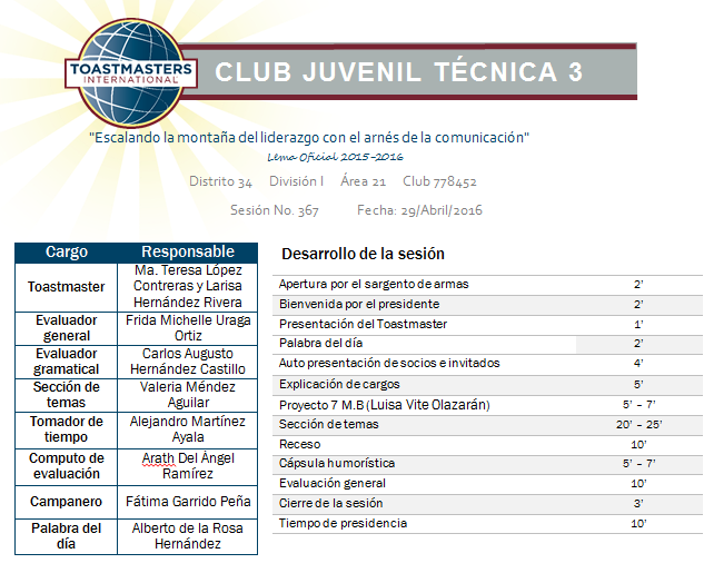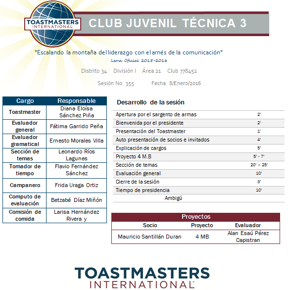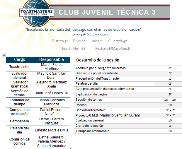 Toastmaster de la sesión Enrique Gael Alonso Ibañez