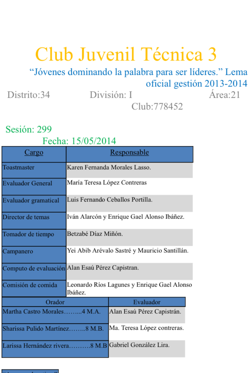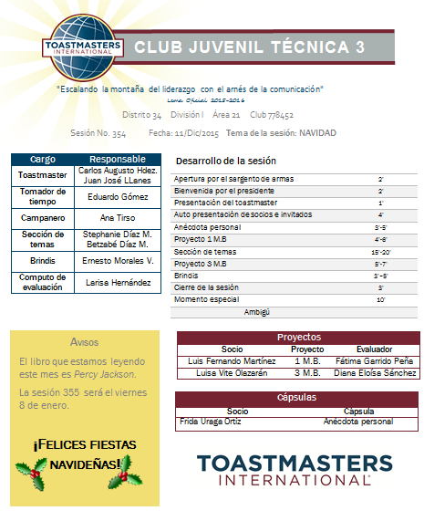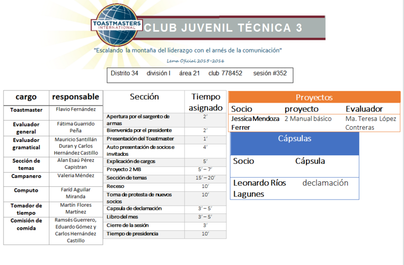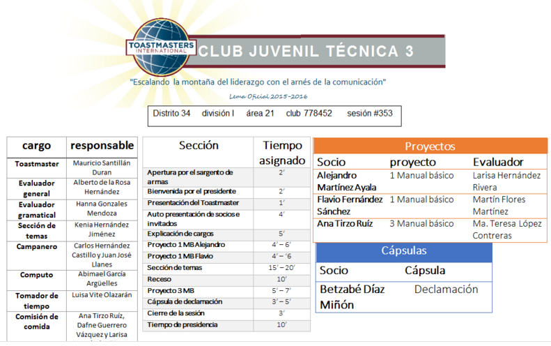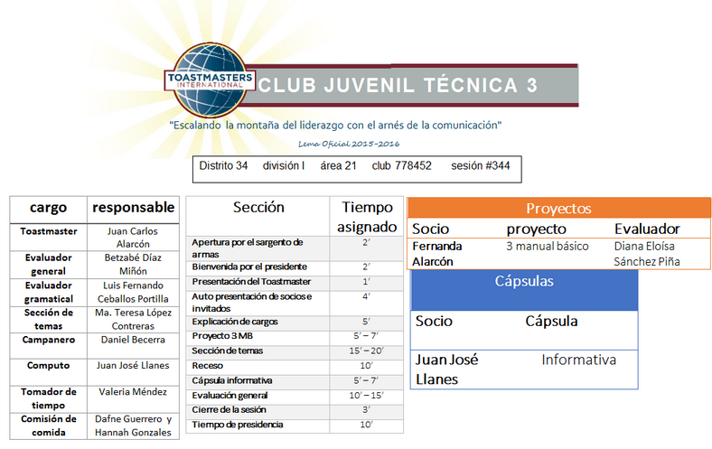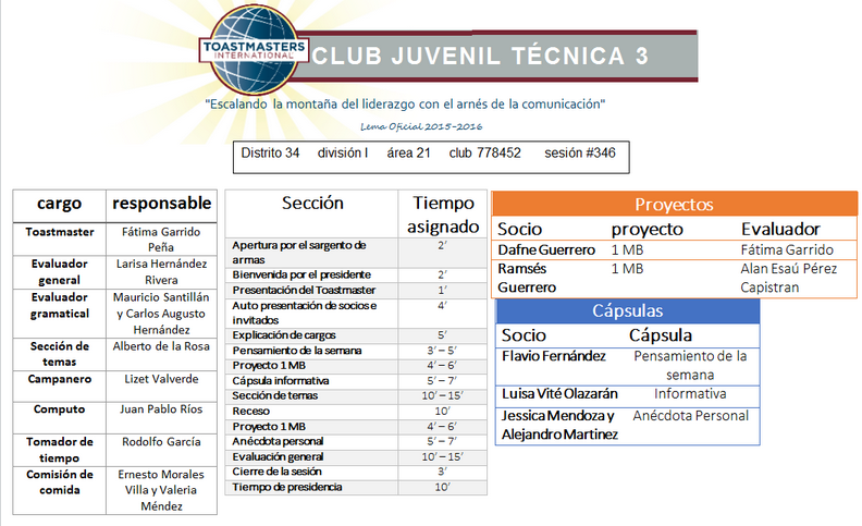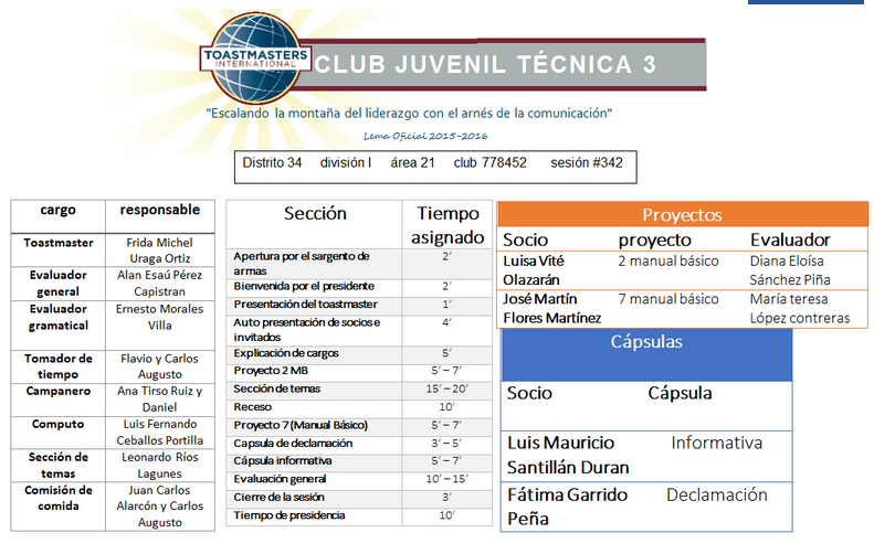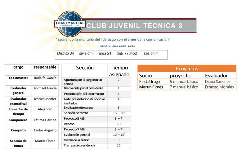 Toastmaster de la sesión Enrique Gael Alonso Ibañez