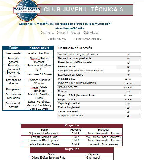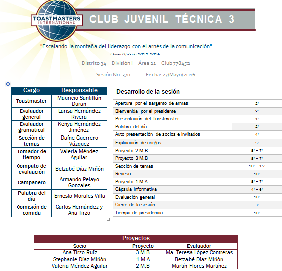 Toastmaster de la sesión Ana Yael Tirso Ruiz